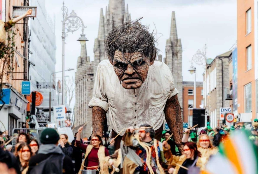 He is surrounded by the folklore characters of Carlow – Mad Sweeney, the Scallionater, Labhraidh Loinsigh, the Cailleach, a Seanachaí and the last Wolf of Carlow. Together they will parade through the streets of Carlow. Everyone is invited to come join them on their journey!